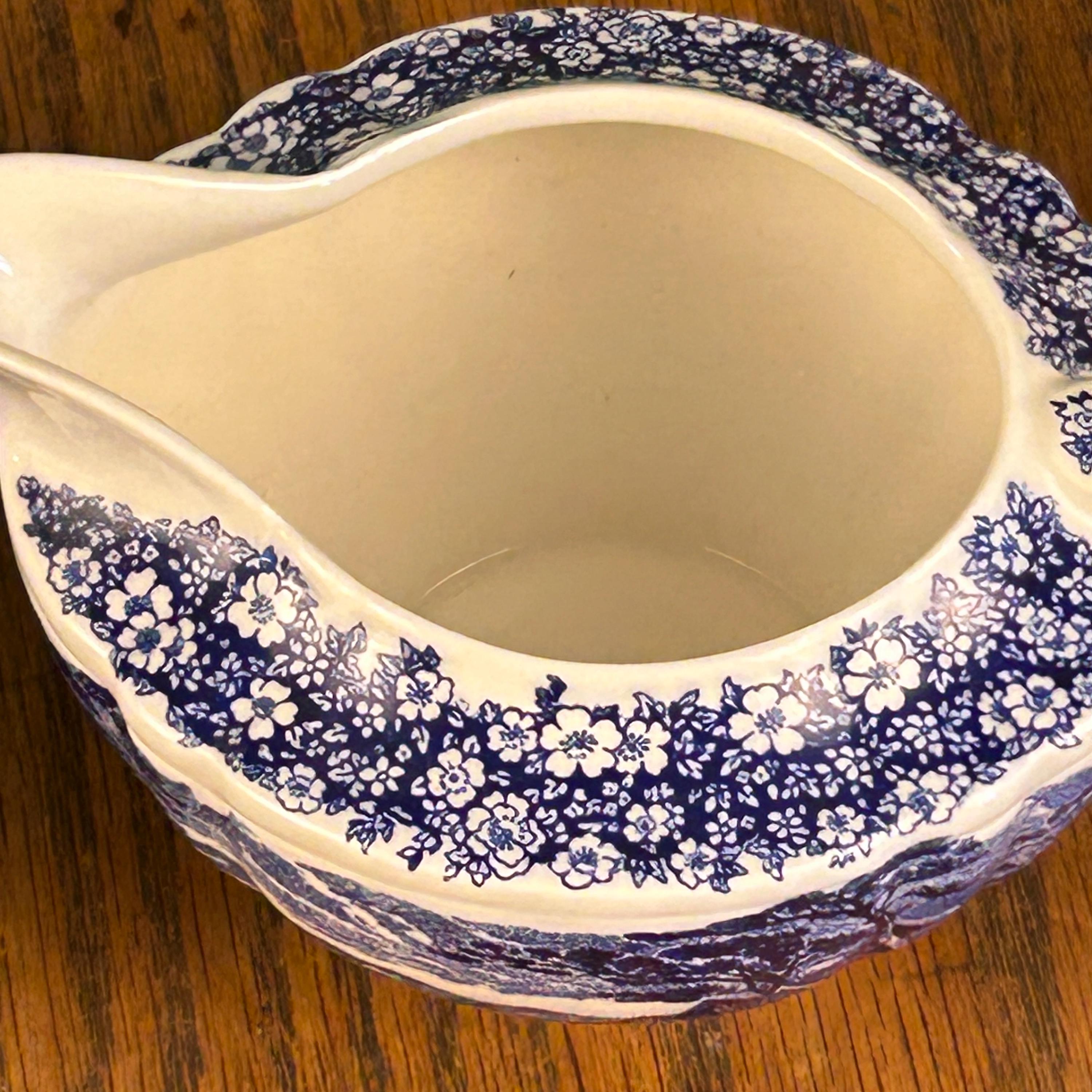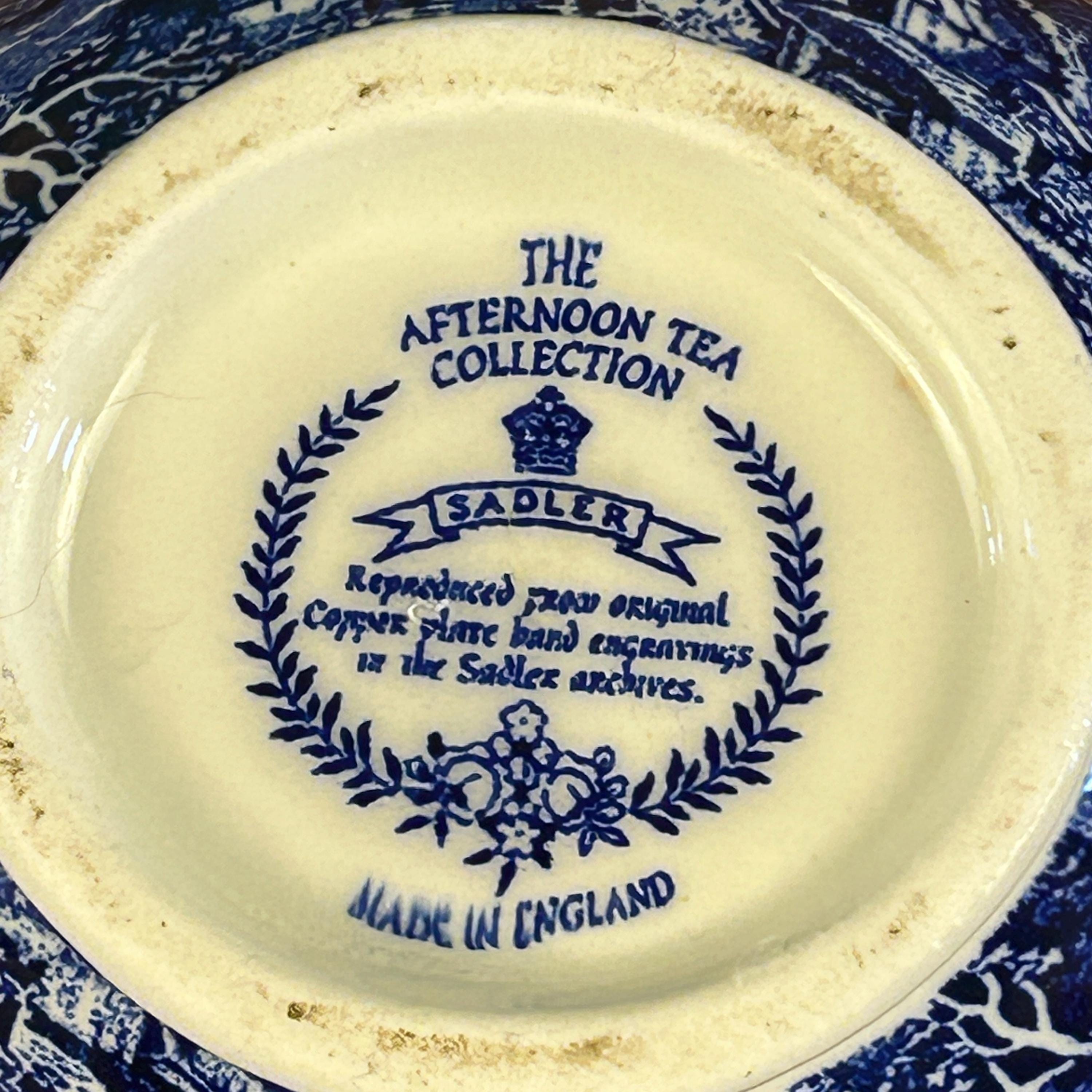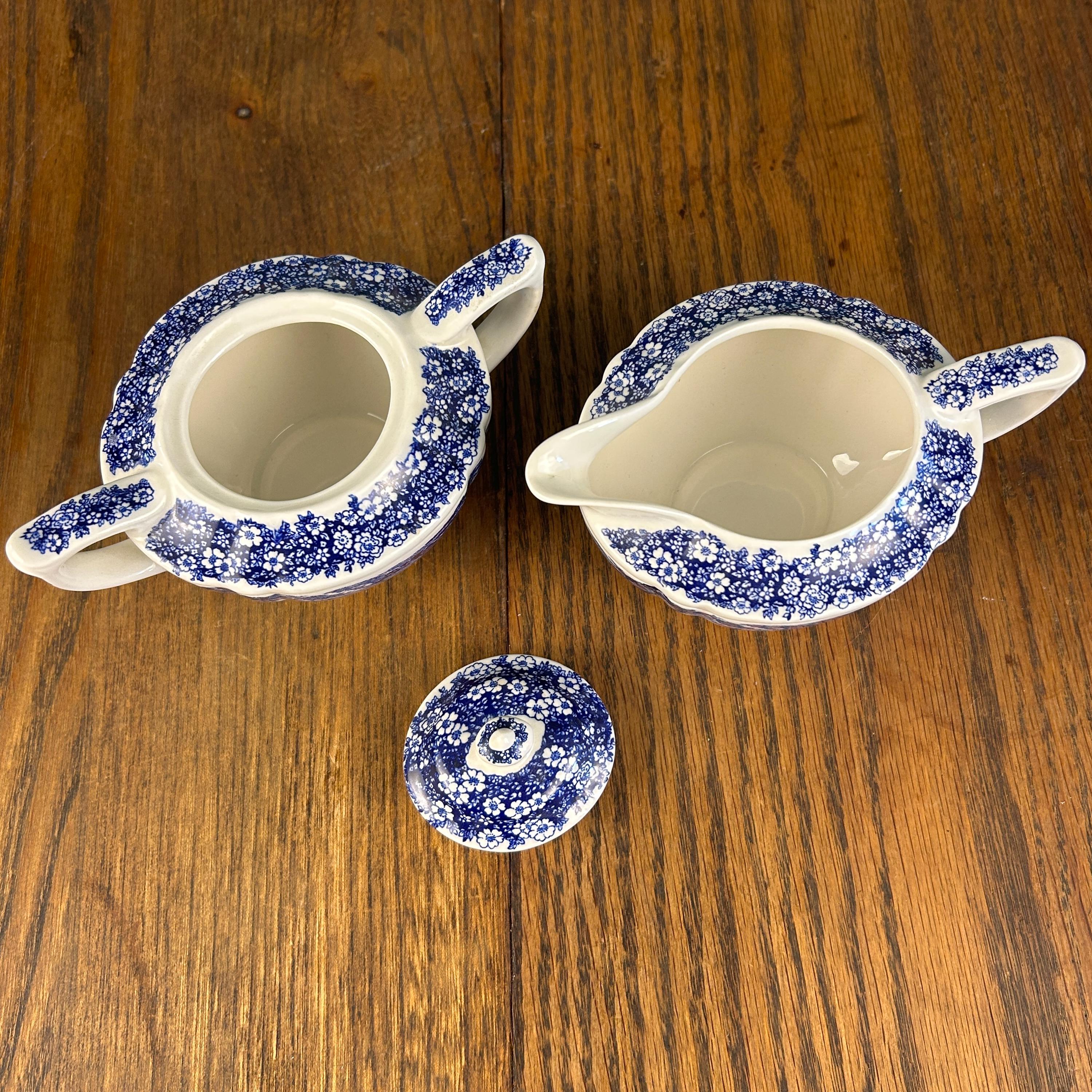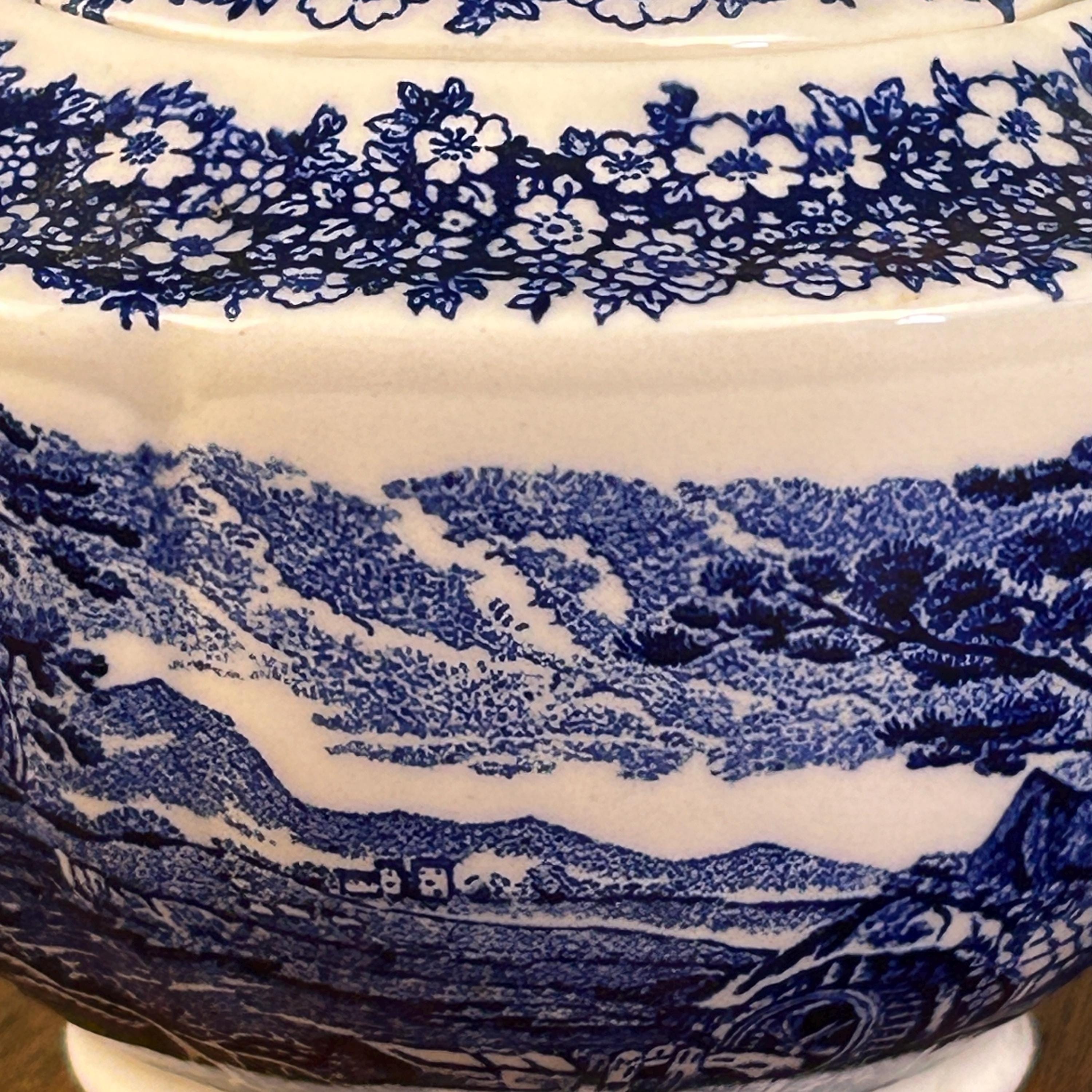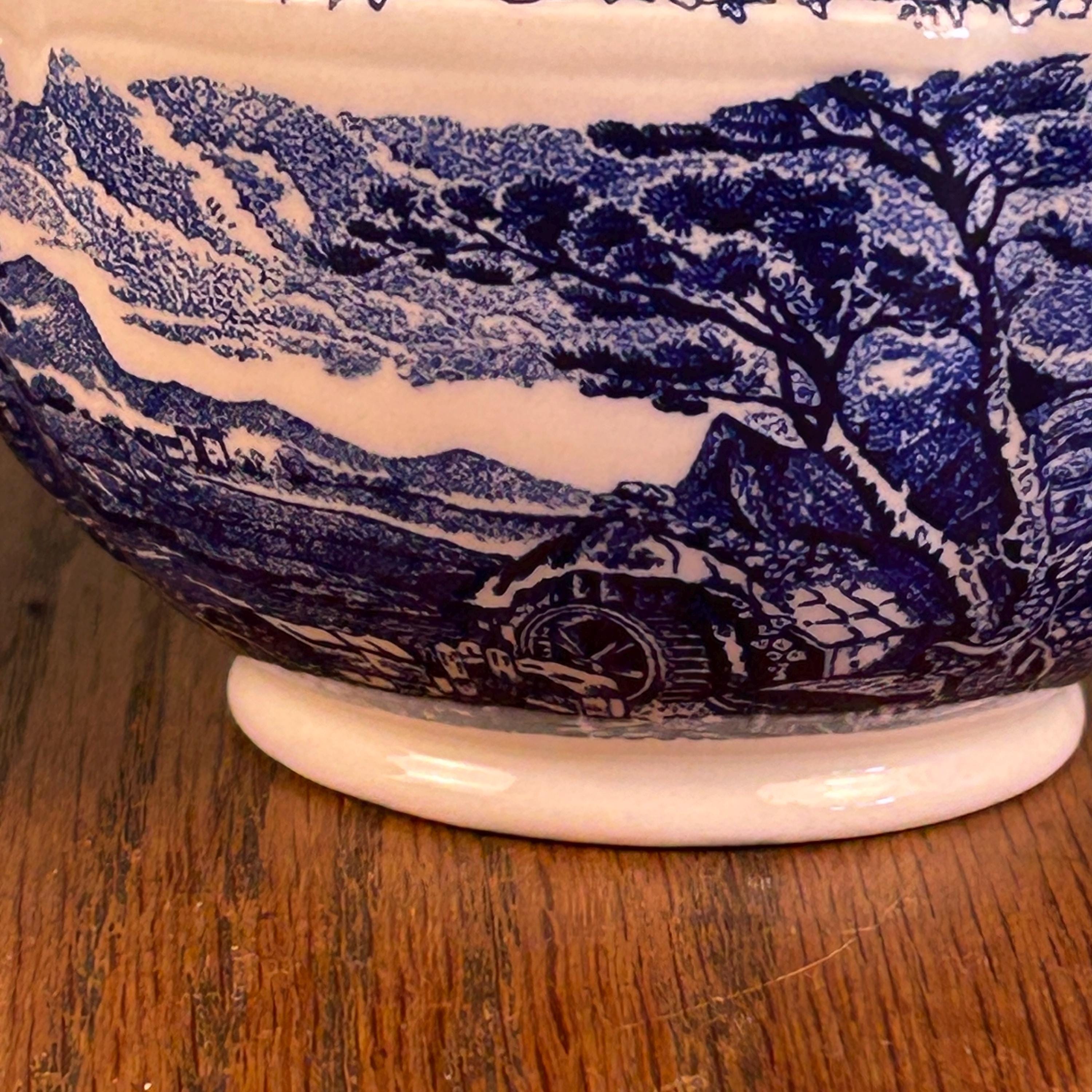 Crafted in England, this elegant set features a classic blue and white transferware design with detailed landscapes and delicate floral accents. The traditional pattern and refined shape make it a perfect addition to any tea lover’s collection or a lovely accent for cottagecore and vintage-inspired kitchens.