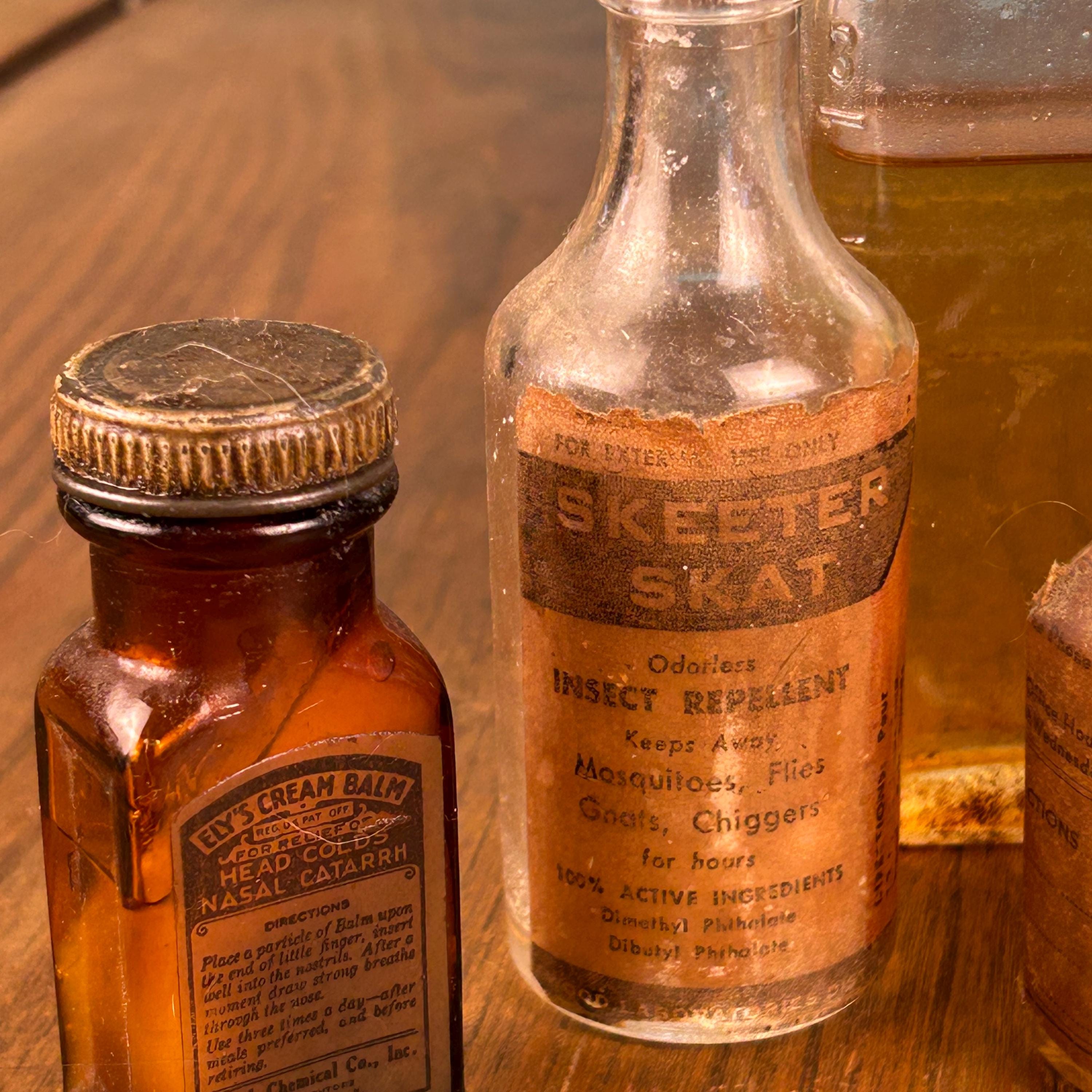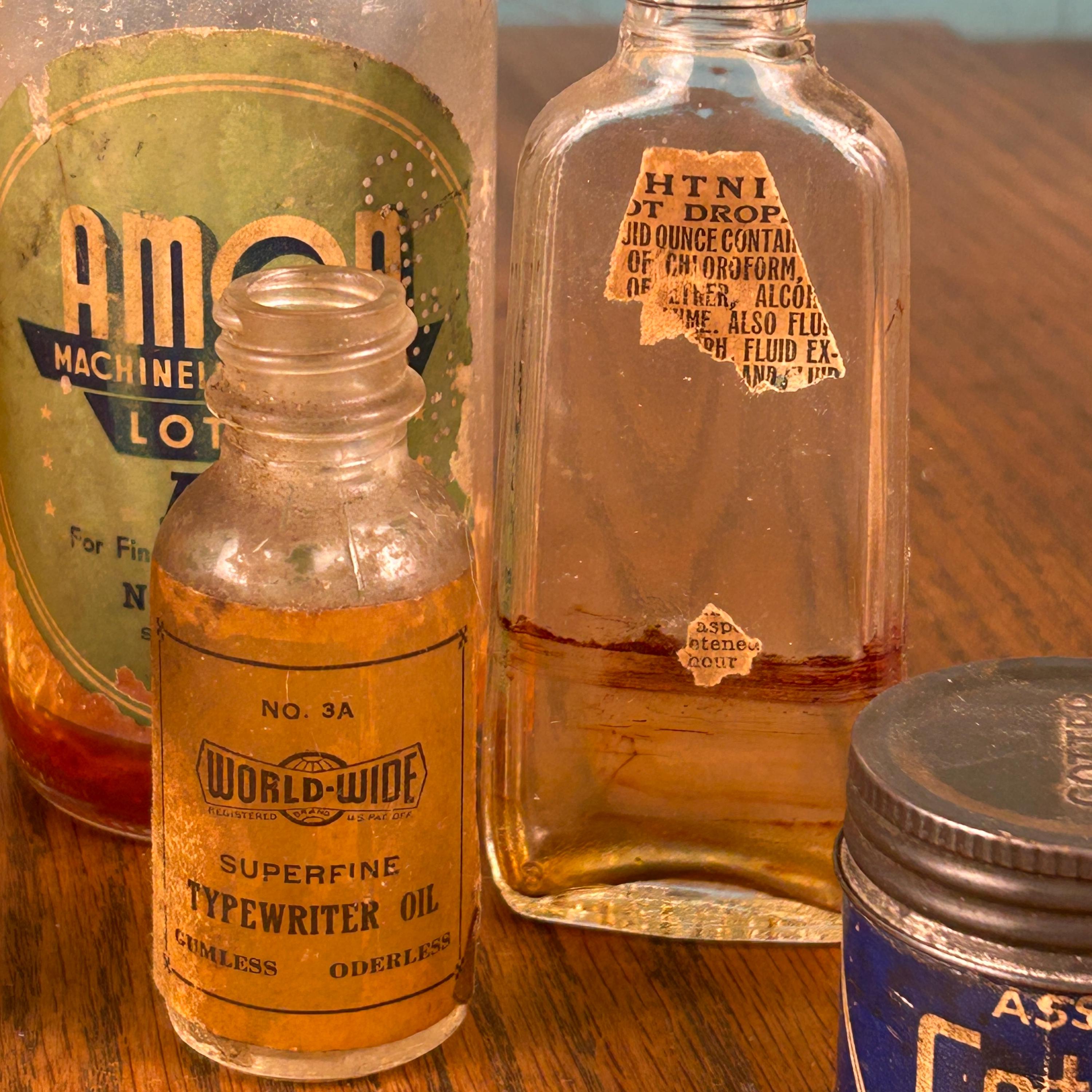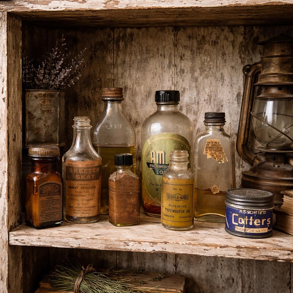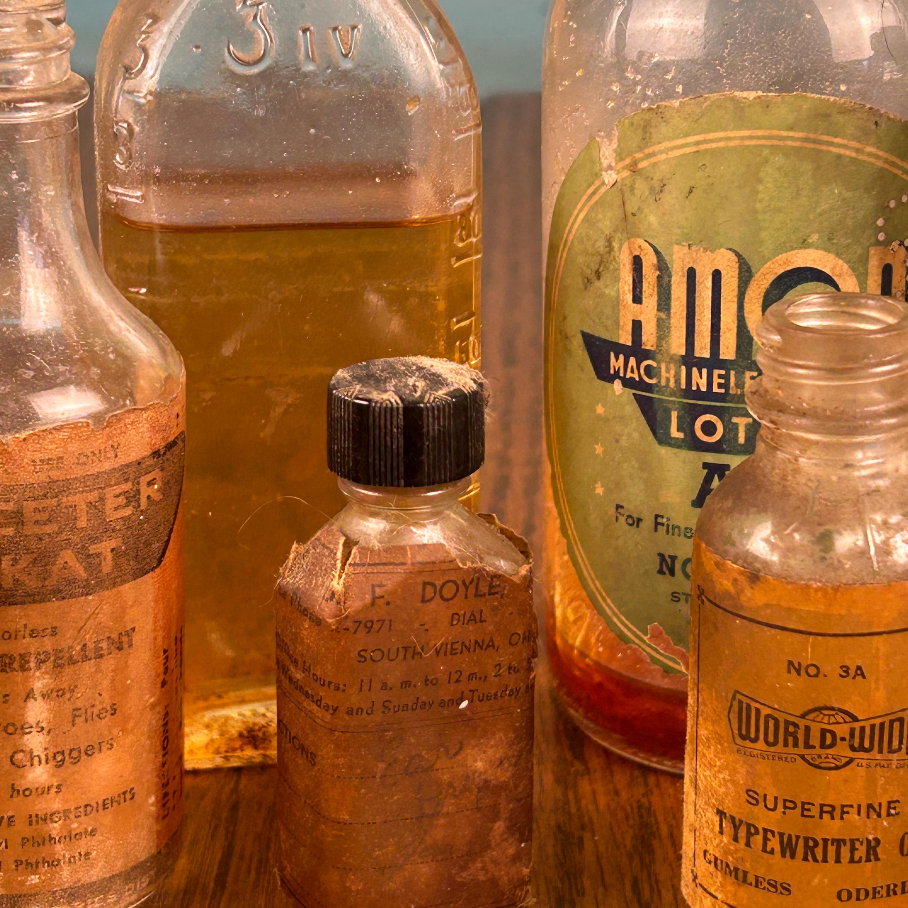 The lot includes a variety of interesting pieces such as Cotter’s, Amoa Machineless Waving Lotion, Skeeter Skat, and additional apothecary-style bottles. Each piece showcases its own history through aged glass, original labels, and subtle wear that only time can create.