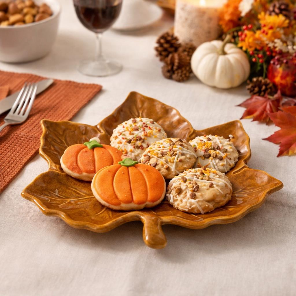 Ideal for serving appetizers, desserts, or cookies, this piece blends functionality with classic Pottery Barn style. Whether used for entertaining or displayed as part of your autumn décor, it adds instant warmth and charm.