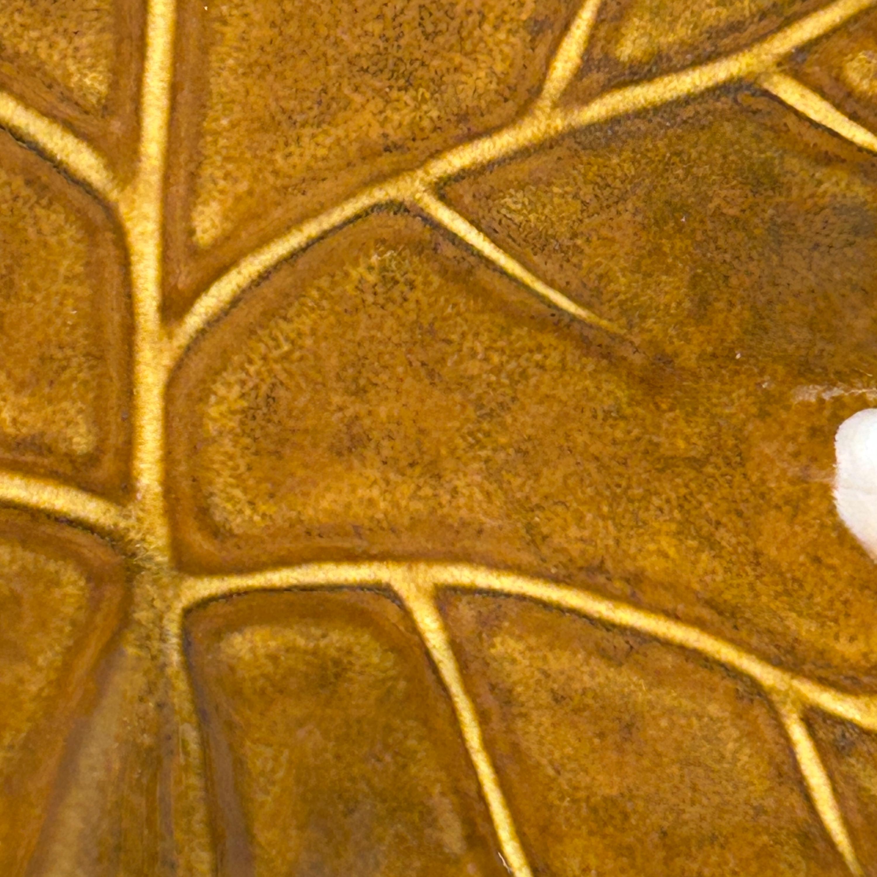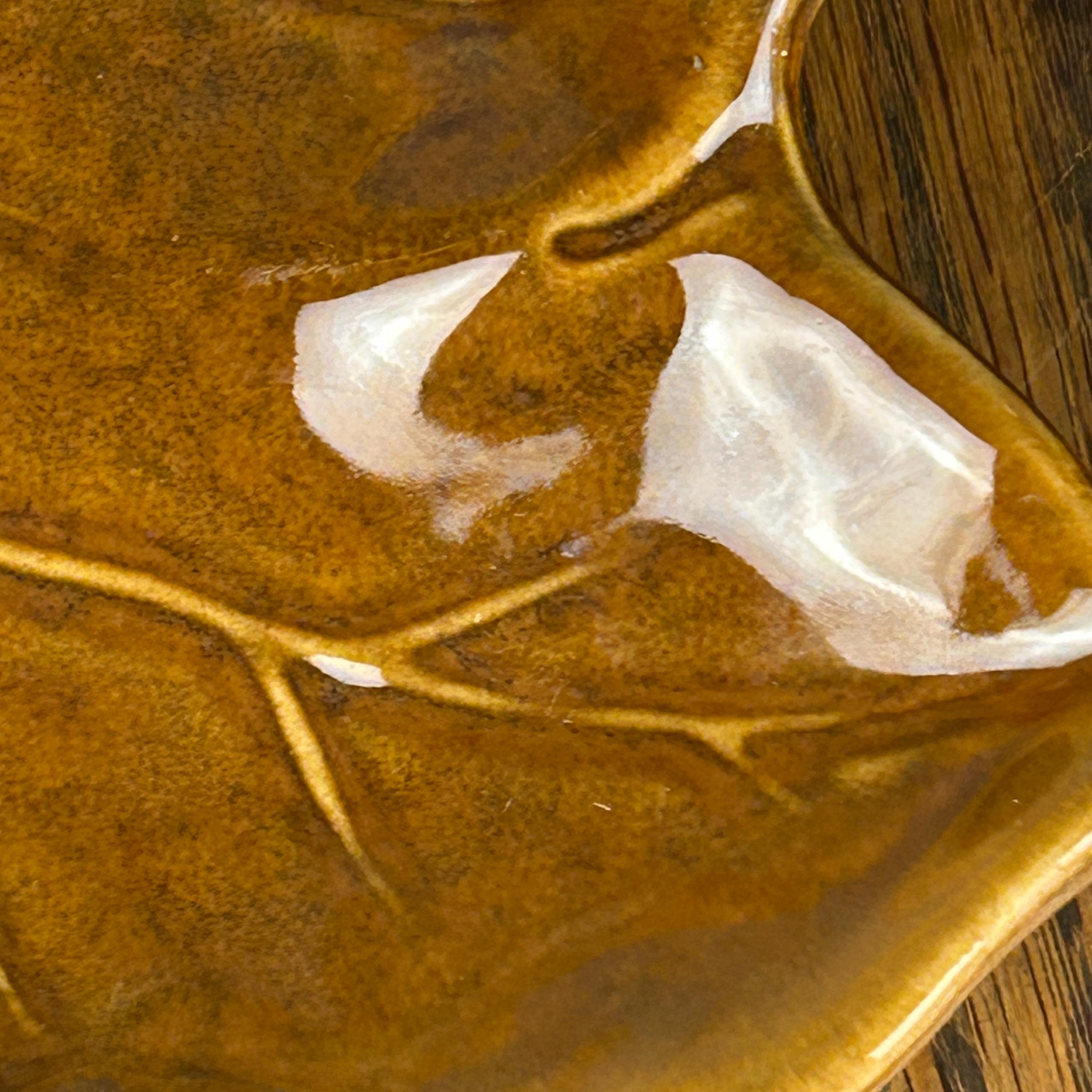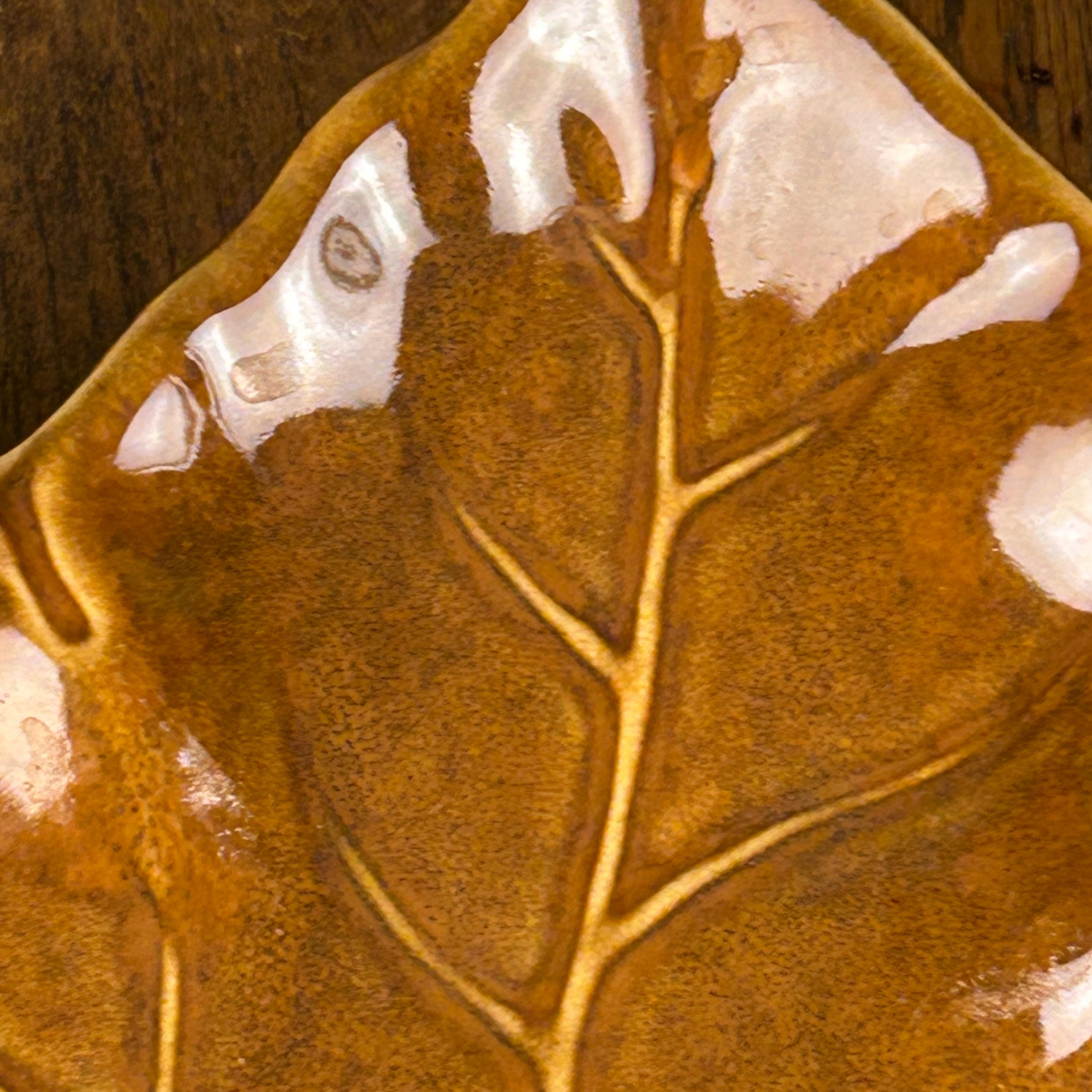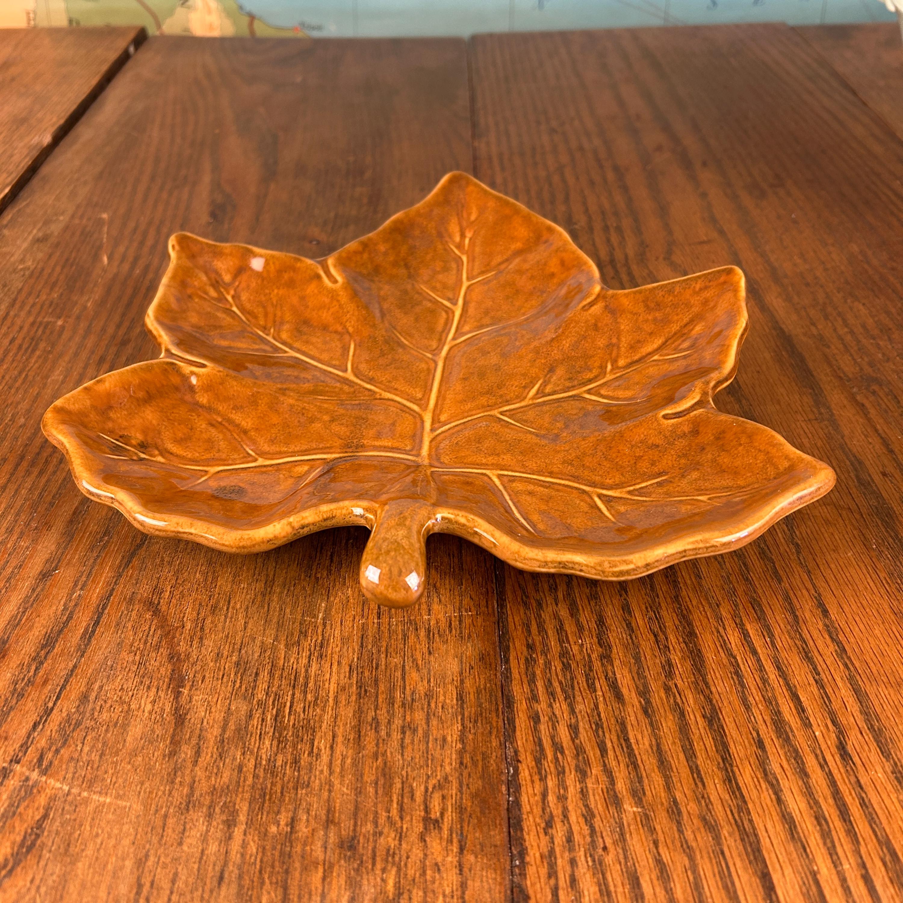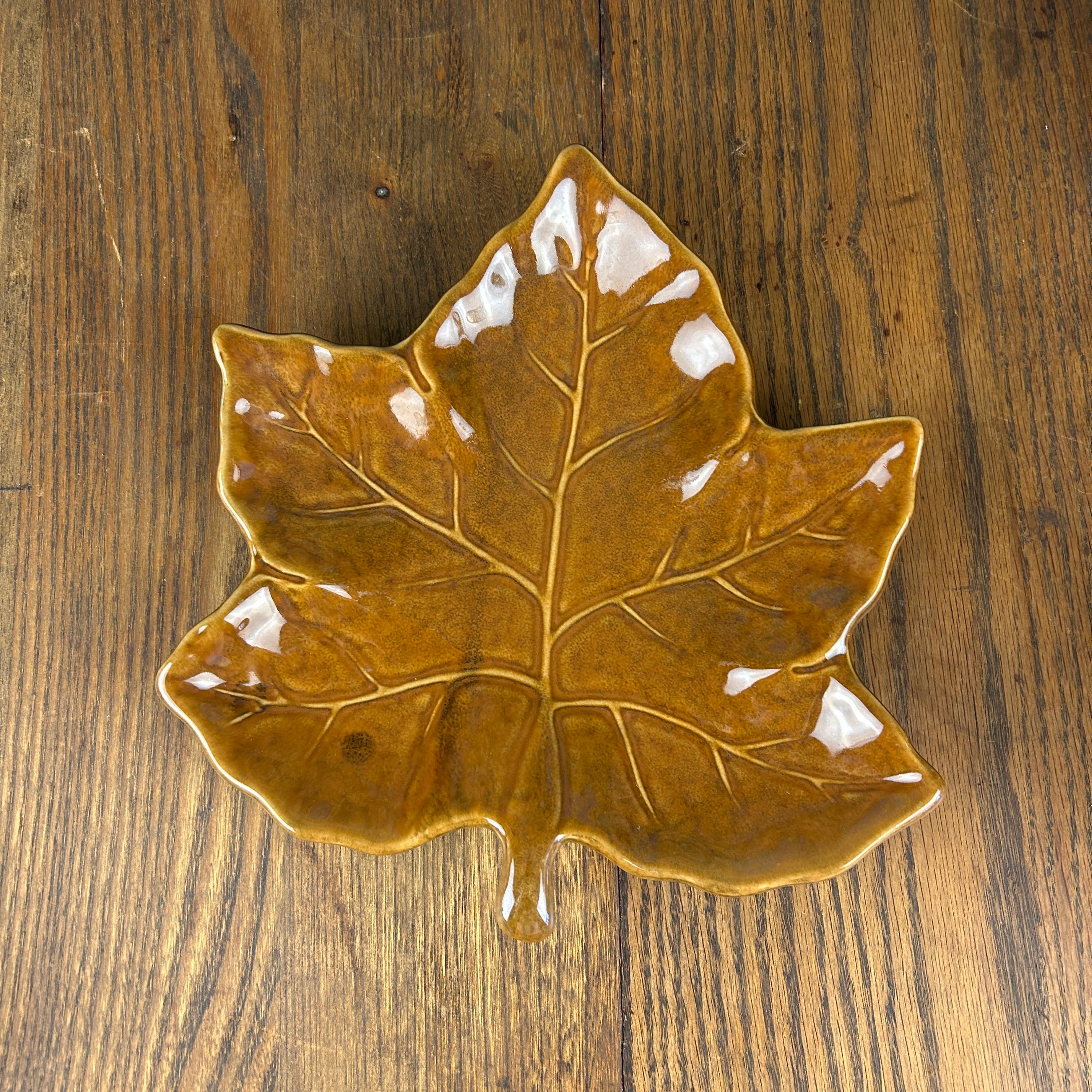 This beautiful vintage Pottery Barn “Harvest Leaf” salad plate is a perfect addition to your fall table. Crafted in a warm amber brown tone, the plate features an elegant leaf shape that brings a cozy, seasonal touch to any setting.