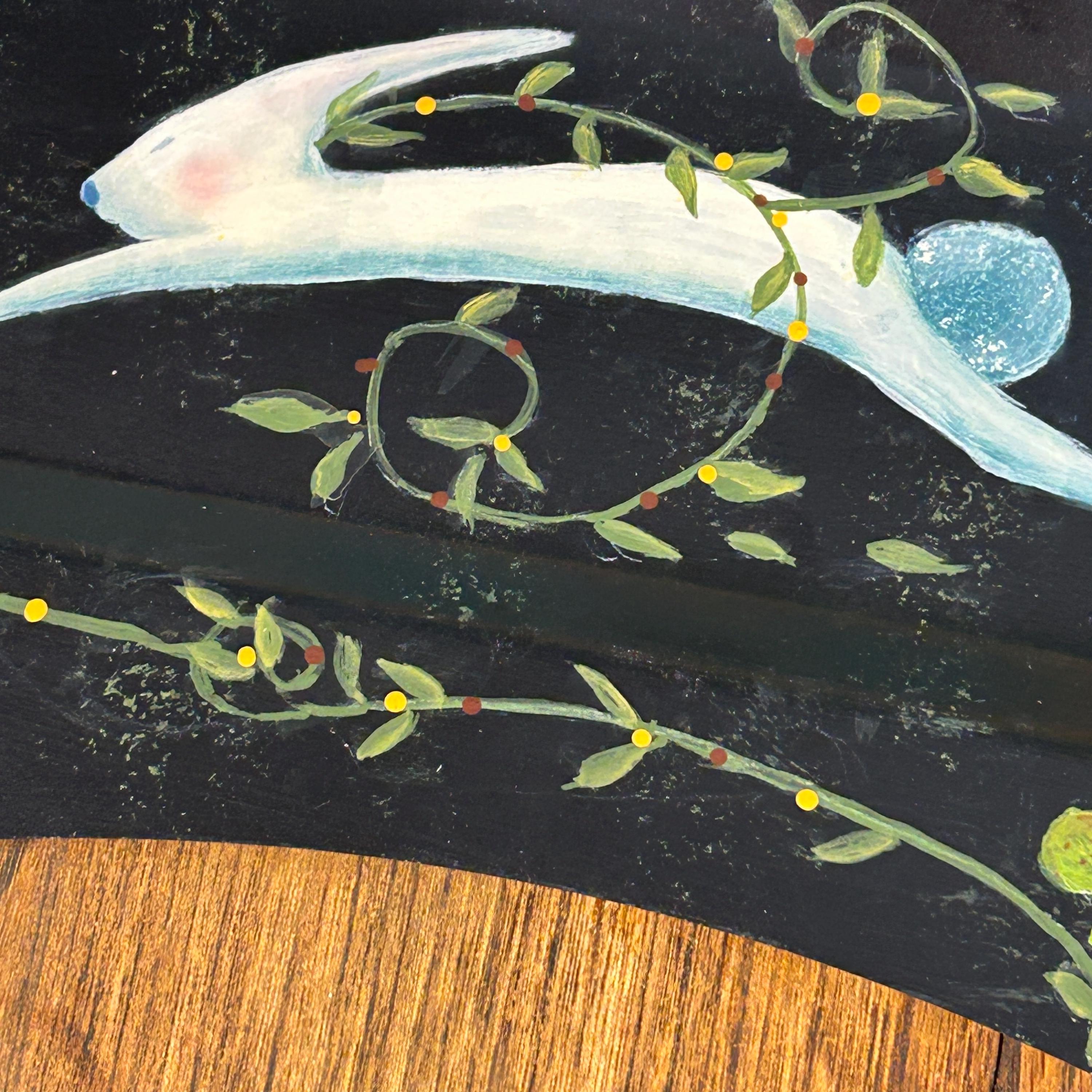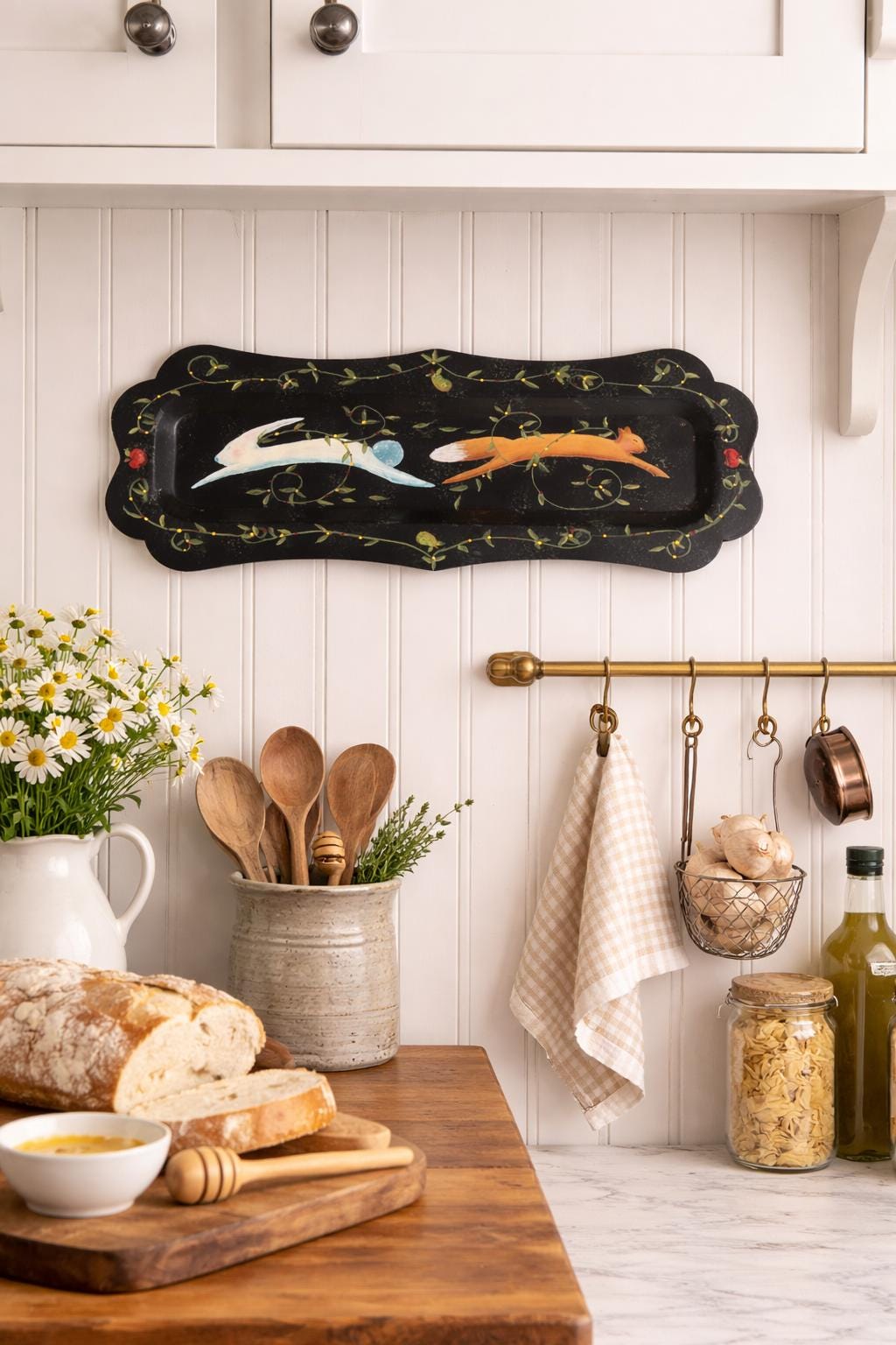 The matte black rectangular tray provides the perfect backdrop for the hand-painted artwork, allowing the delicate details and earthy tones to stand out beautifully. With built-in handles, it’s both functional and decorative—ideal for serving, displaying, or adding a touch of rustic woodland charm to your home.