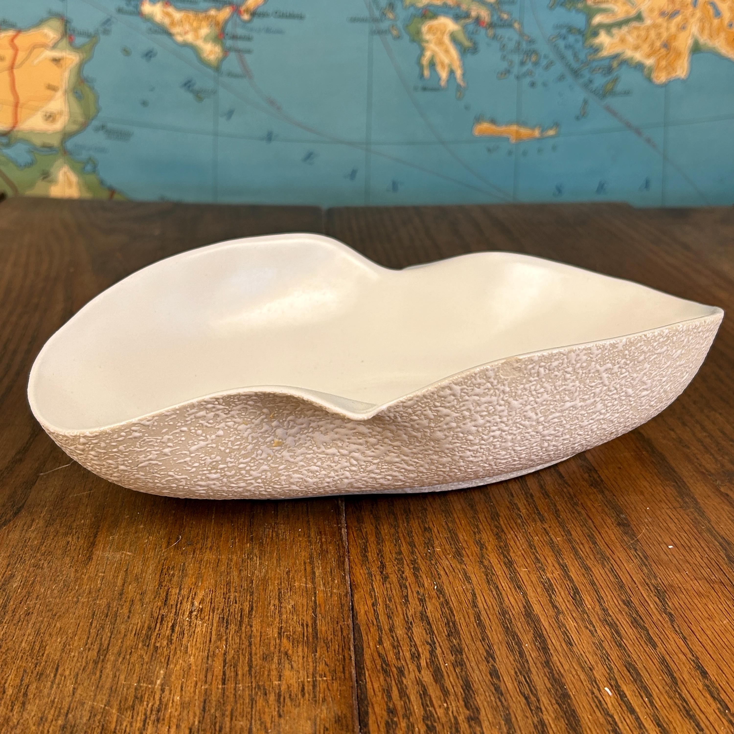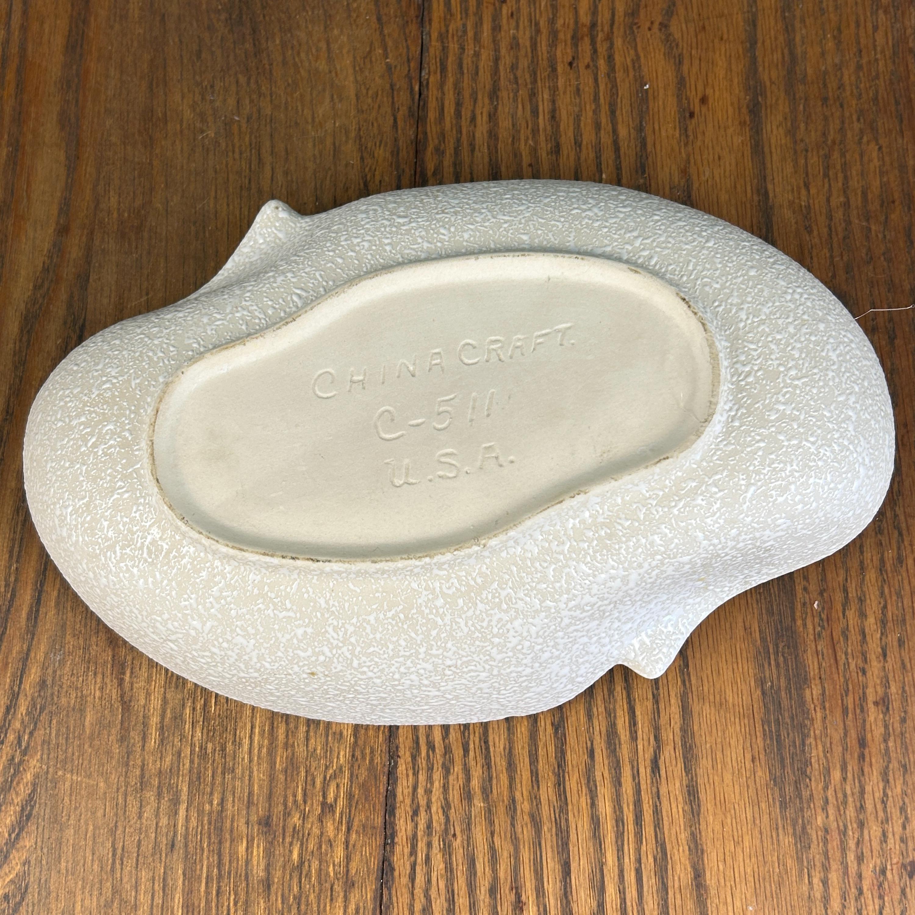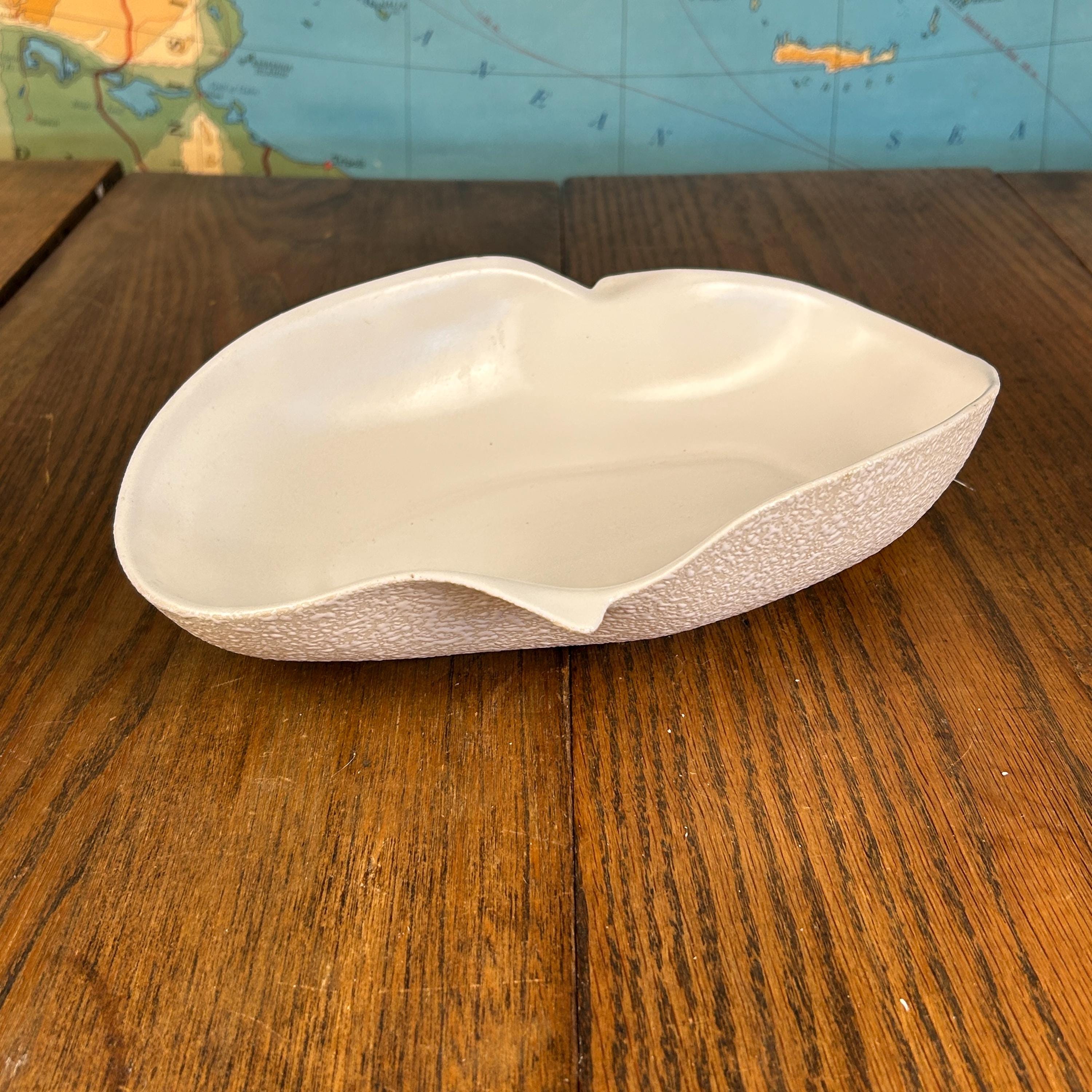 This stylish vintage China Craft USA C-511 console bowl is a wonderful example of mid-century modern design. Featuring a distinctive kidney-shaped silhouette, this piece reflects the organic, abstract forms that defined 1950s–1960s décor.