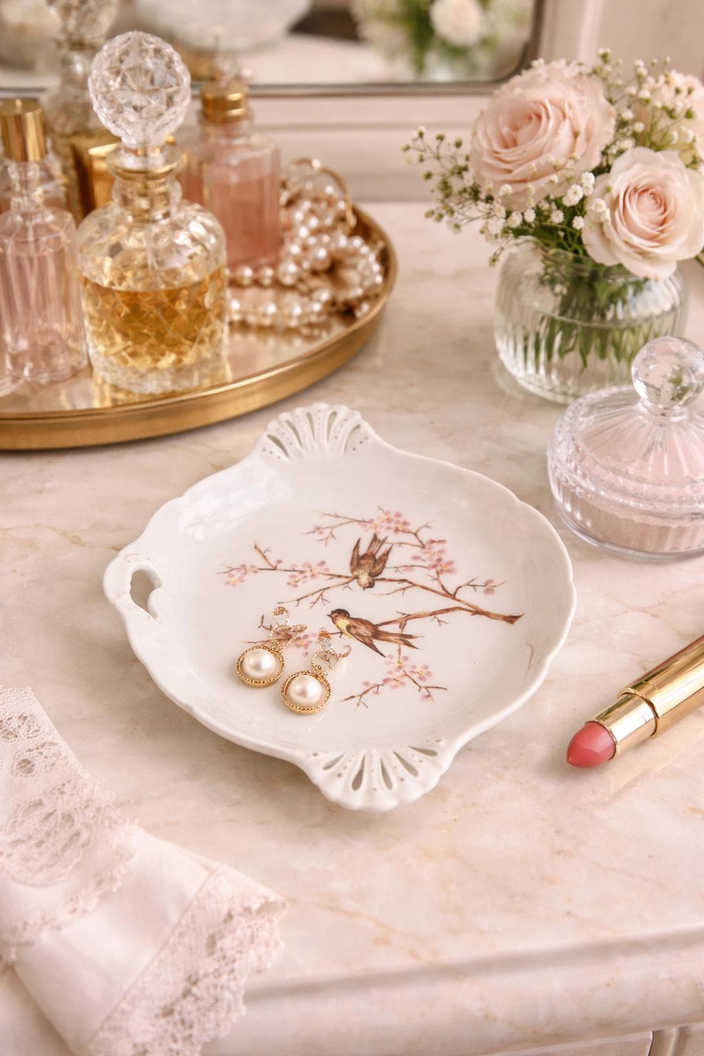A charming and elegant piece—perfect for collectors or anyone who loves delicate floral and bird motifs.
