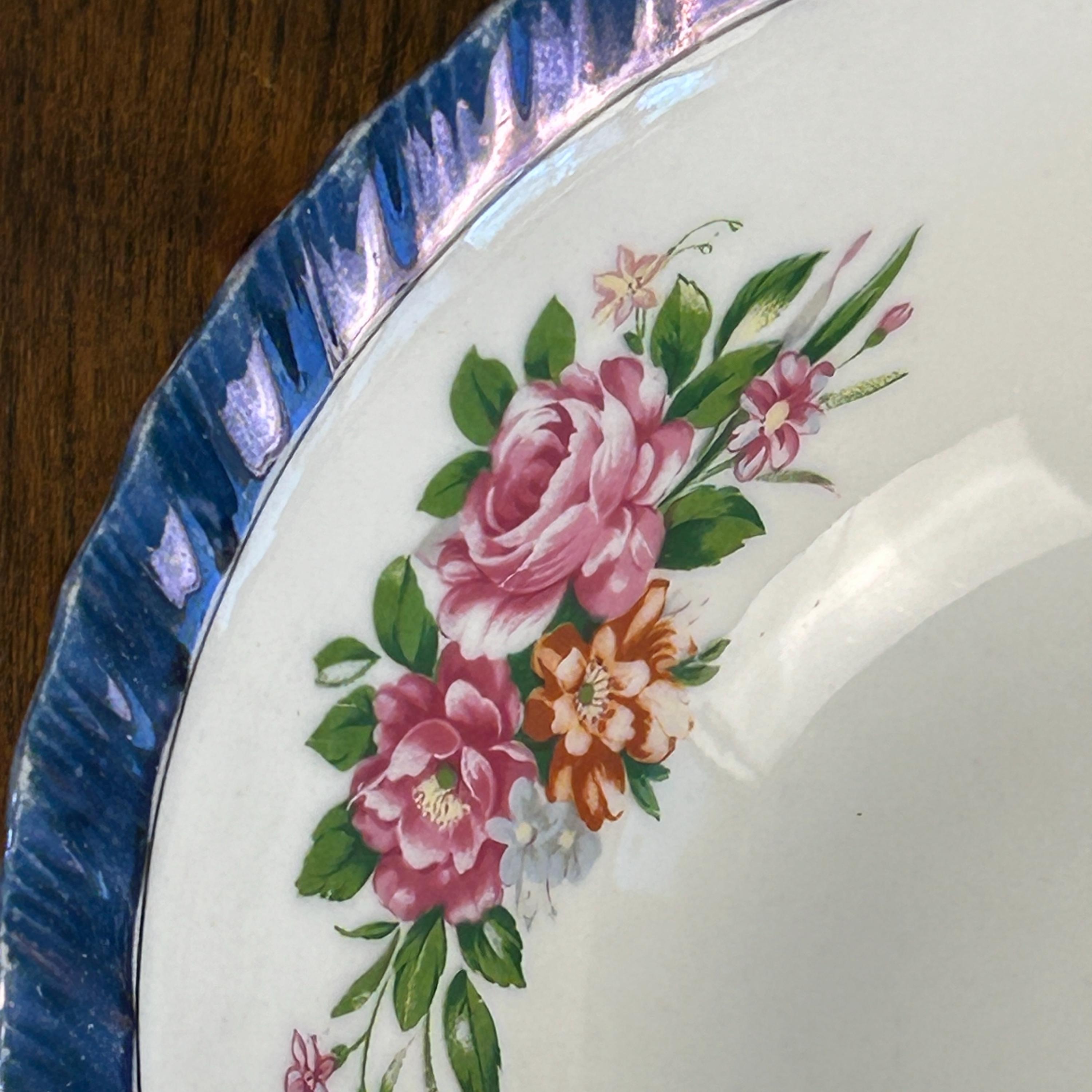 Blue lusterware scalloped rim