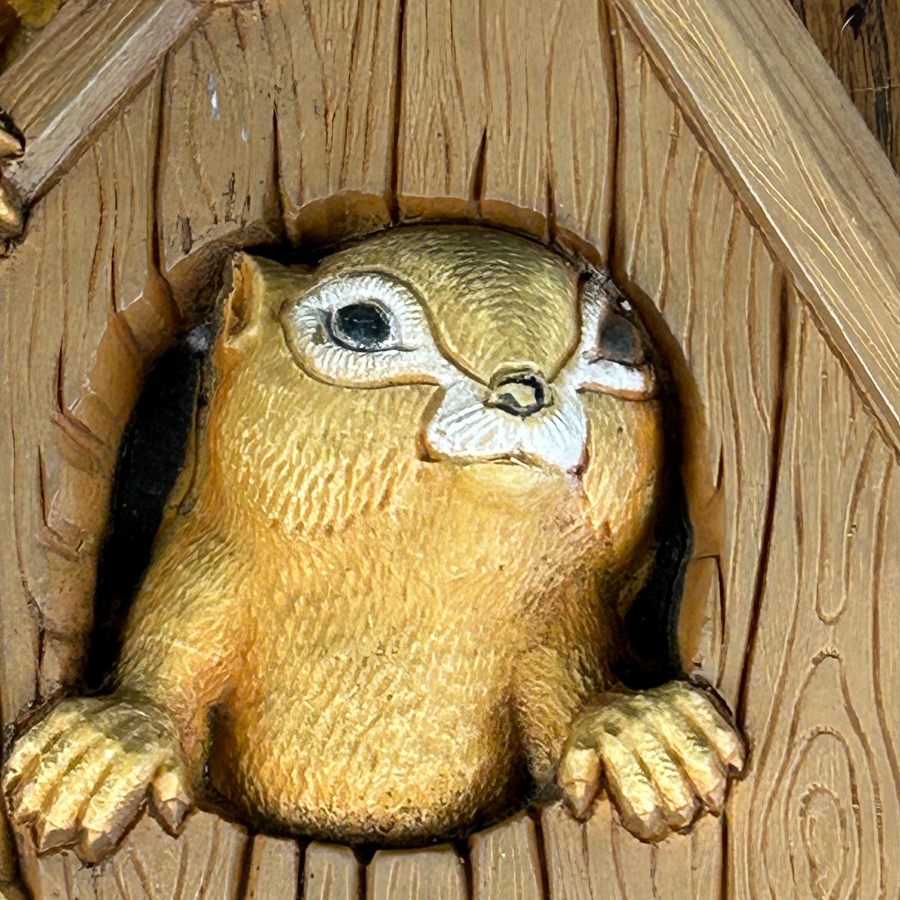Crafted from molded hard plastic, the plaque is lightweight yet durable and comes with a metal sawtooth hanger on the back for easy wall display. Perfect for adding a cozy woodland touch to a nursery, cottage space, or vintage-inspired home.
