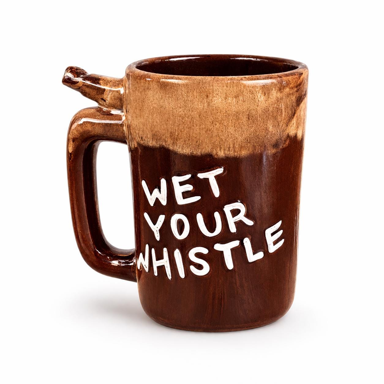 This unique mug features a built-in whistle in the handle—yes, it actually works! Designed as a humorous gag gift, it typically reads “Wet Your Whistle” on one side and “Went to P, leave this drink alone” on the other, making it a fun conversation starter at any gathering.