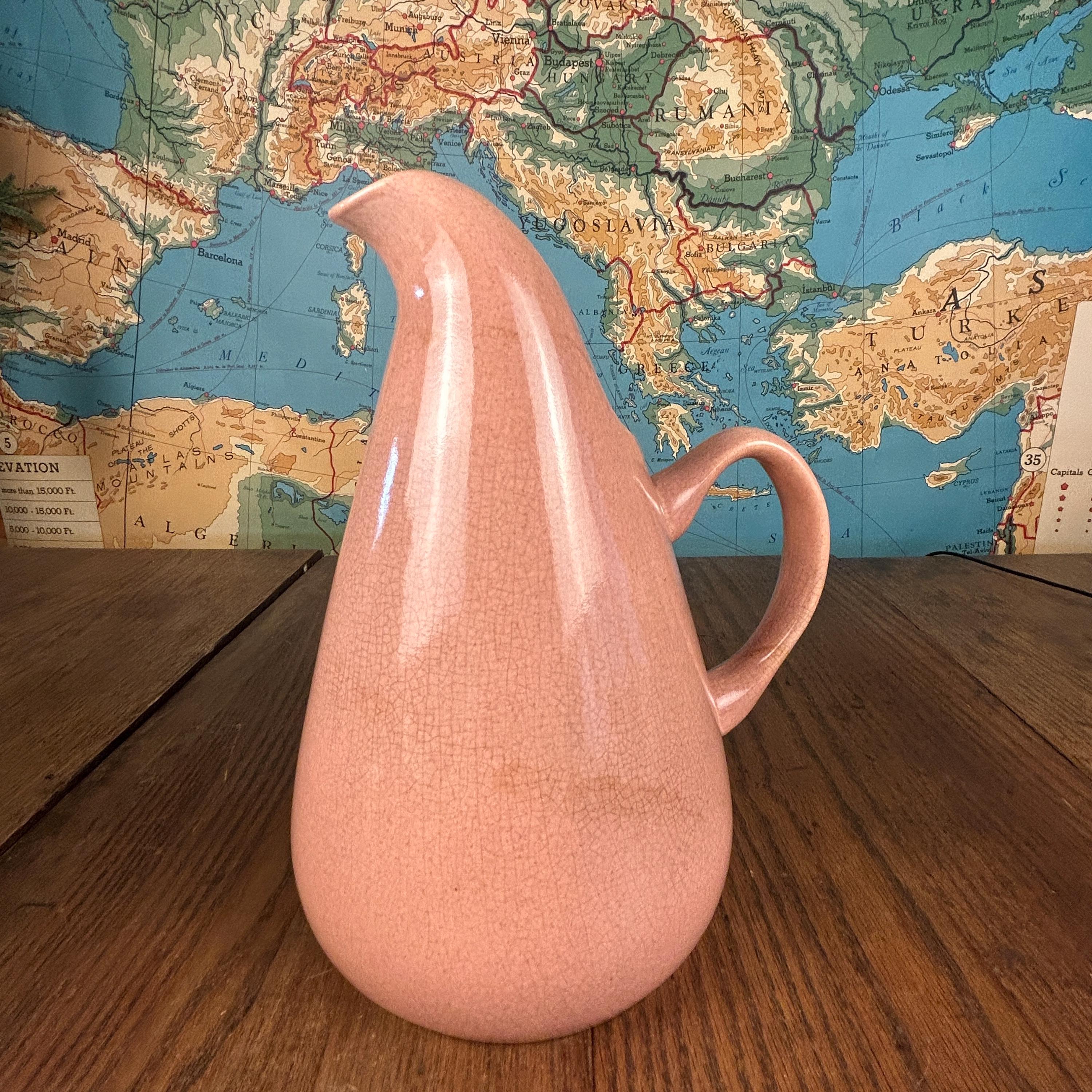 This piece is perfect for collectors of Russel Wright, mid-century modern enthusiasts, or anyone looking to add a bold pop of vintage color to their space. Use it as a pitcher, vase, or standout display piece.