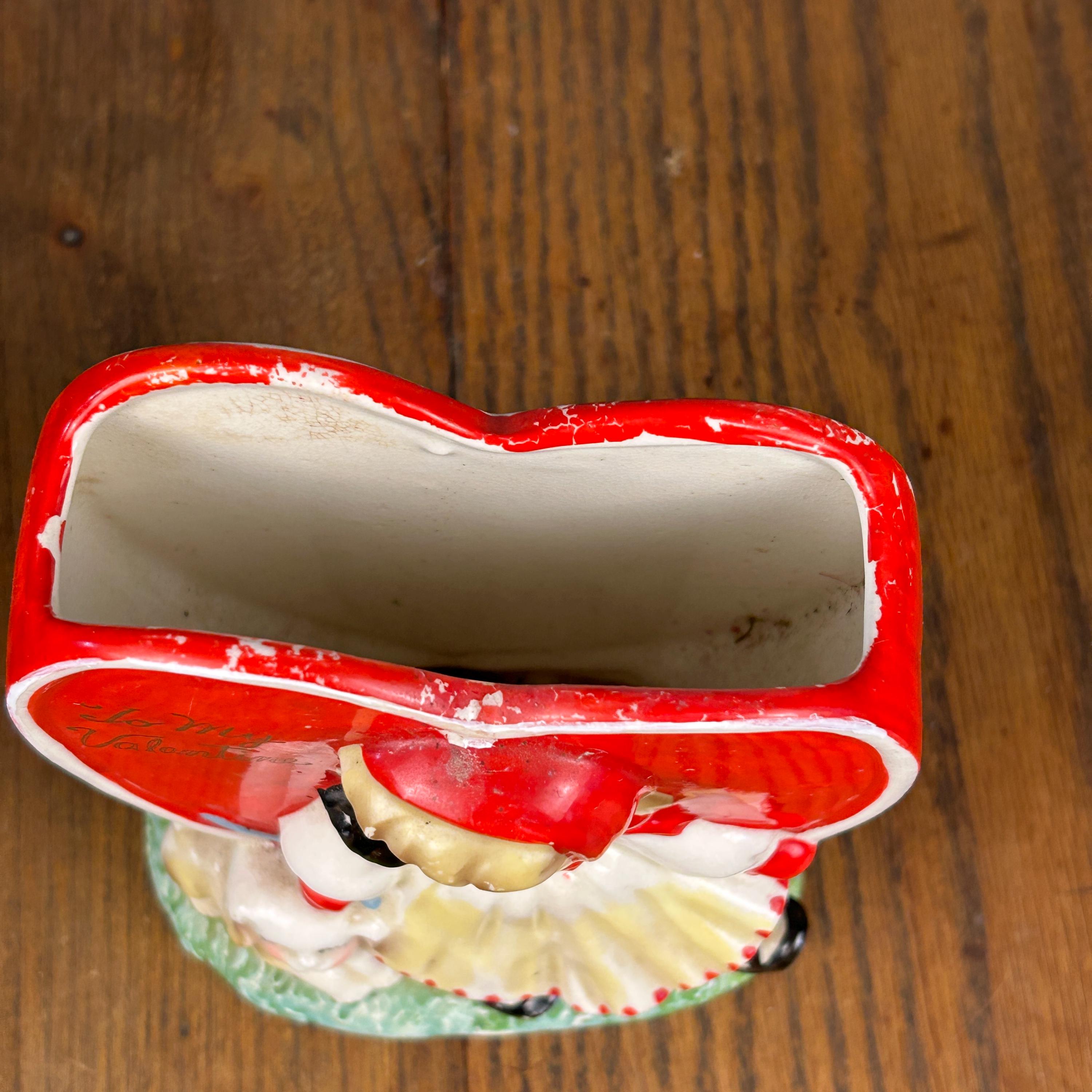 The piece is inscribed with “To My Valentine,” making it a perfect seasonal display or a thoughtful vintage gift. With its classic mid-century style and sentimental design, this planter is ideal for holding small plants, succulents, or simply displaying as a collectible decorative piece.